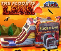 We all have seen the hit TV show The Floor is Lava! We have now brought it to life with dual slides off the awesome bounce house with tons of obstacles to jump to and from. This new bounce and slide combo will be perfect for any school, backyard party, church or corporate event! It's vibrant colors and unique and detailed design will get everyone's attention!