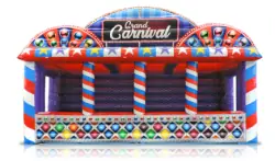 The Grand Carnival Booth Game Package offers fun and excitement for up to 4 players at a time. Whether you like carnival games or yummy concessions, or a combination, this attraction is bound to excite. The Grand Carnival Booth Game Package requires you to select from a combination list of 9 carnival games and 3 concession machines. This package comes with (3) of our 6' Resin Banquet Tables to place the carnival games and concessions atop.