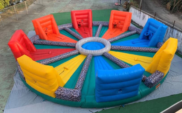 - OCCUPANCY: A maximum of 5-6 kids of equal size at one time for bounce houses, and 1 person at a time for slides is what most inflatable manufacturers recommend.