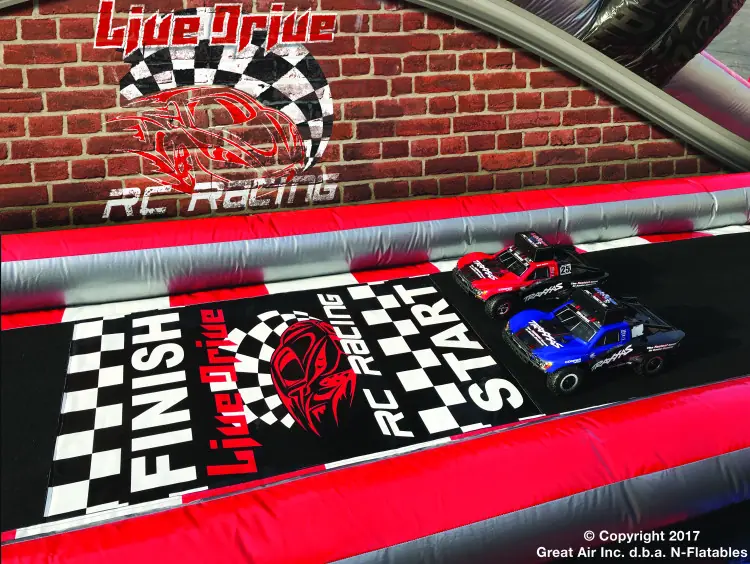 Kick your race car party into high gear with the MONSTER JAM Racing rental from Bounce House Atlanta! An amazing racing experience! Event guests who are watching the excitement from the side get an incredible view of 4 ultra-fast RC cars battling it out to the finish line.