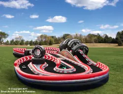 This isn’t your average race car game! The 54’ long track gives racers a variety of hairpin turns, realistic engine sounds & more! This is the perfect race car party rental for birthdays, school carnivals, church fundraisers or corporate events. Picture the fun your employees would have racing one another with the cheers of their coworkers in the background. Kids would have a blast racing their friends and winning bragging rights or prizes!