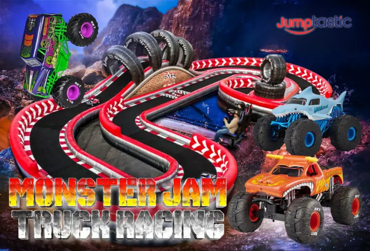 Kick your race car party into high gear with the MONSTER JAM Racing rental from Bounce House Atlanta! An amazing racing experience!  Event guests who are watching the excitement from the side get an incredible view of 4 ultra-fast RC cars battling it out to the finish line.