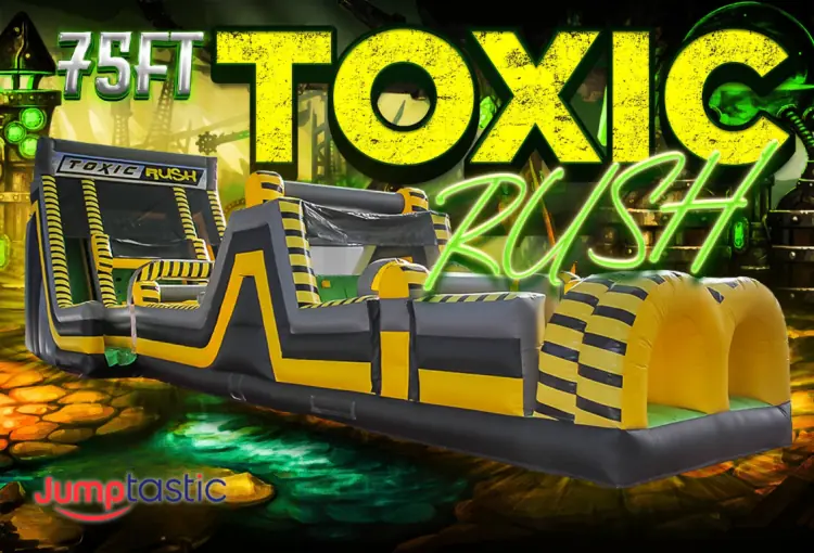 Take your summer event or birthday party to the next level with Bounce House Atlanta's 75' Toxic Rush Obstacle Course. This remarkable inflatable obstacle course rental is sure to be a hit for kids of all ages. Kids will love taking on all the obstacles, running up and down the slide, and climbing the awesome rock wall. Plus, it has a cool Toxic Rush theme – so you can bring some serious excitement to your own backyard! Get ready for an unforgettable adventure with Bounce House Atlanta's 75' Toxic Rush Obstacle Course today! Whether you looking for an inflatable obstacle course rental for your summer event or birthday party, Bounce House Atlanta has it all!