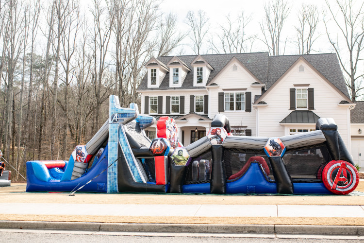 It's time to assemble! Bring some Marvel excitement to your next gathering with Bounce House Atlanta's Marvel Avengers Dual Lane Obstacle Course (Wet or Dry). This fun inflatable obstacle course rental is perfect for active kids looking for a thrilling way to stay fit and have a blast. Choose between the wet version, which comes with two slides that lead into a pool, or the dry version, which just has two slides and no pool. Kids will feel like they're in the middle of their own superhero adventure when they tackle this obstacle course! Get ready for an unforgettable adventure with Bounce House Atlanta's Marvel Avengers Dual Lane Obstacle Course (Wet or Dry) today!