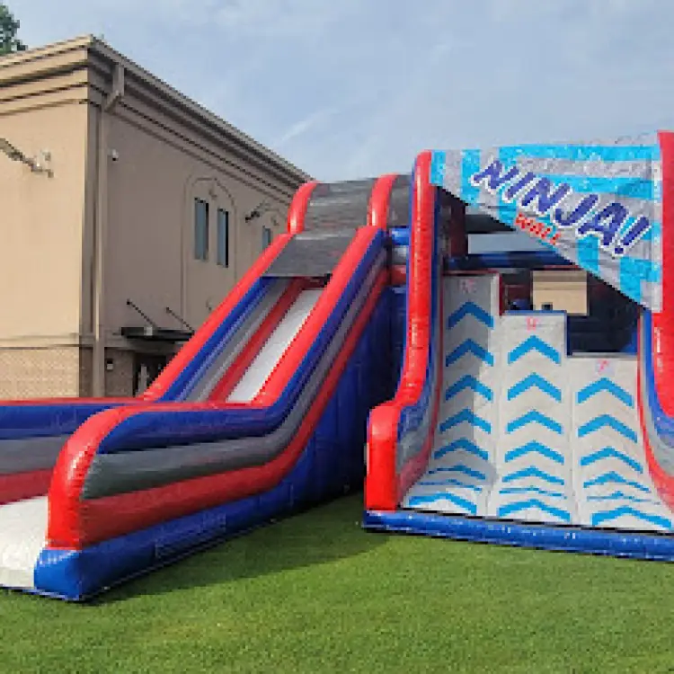 Take your summer event or birthday party to the next level with Bounce House Atlanta's Ninja Warrior Obstacle Wall and 22' Slide. This remarkable inflatable obstacle course rental is perfect for kids looking for an extreme challenge. Kids will love taking on all the obstacles, running up and down the slide, and tackling the awesome rock wall – all while having an absolute blast!