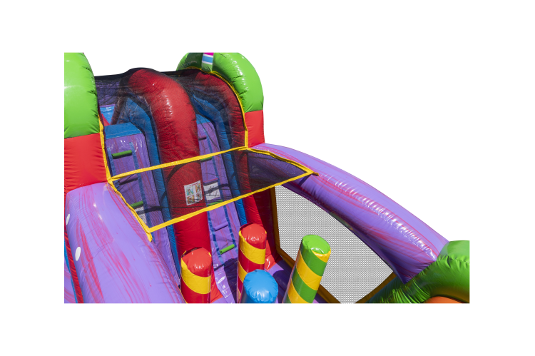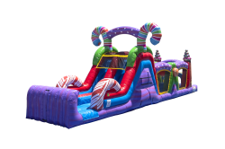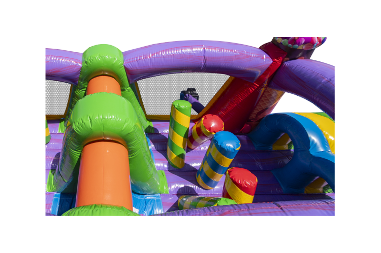 Take your next party or event to the next level with Bounce House Atlanta's 47' Sugar Rush Obstacle Course with Dual Lane Slide! This inflatable obstacle course is filled with excitement from its bright, cheerful colors to its dual lane slides and climbing wall. Plus, it has a built-in pool stopper at the bottom for extra fun and wetness! Get ready for an unforgettable day of fun with Bounce House Atlanta's 47' Sugar Rush Obstacle Course with Dual Lane Slide. It's sure to be a hit at any gathering!